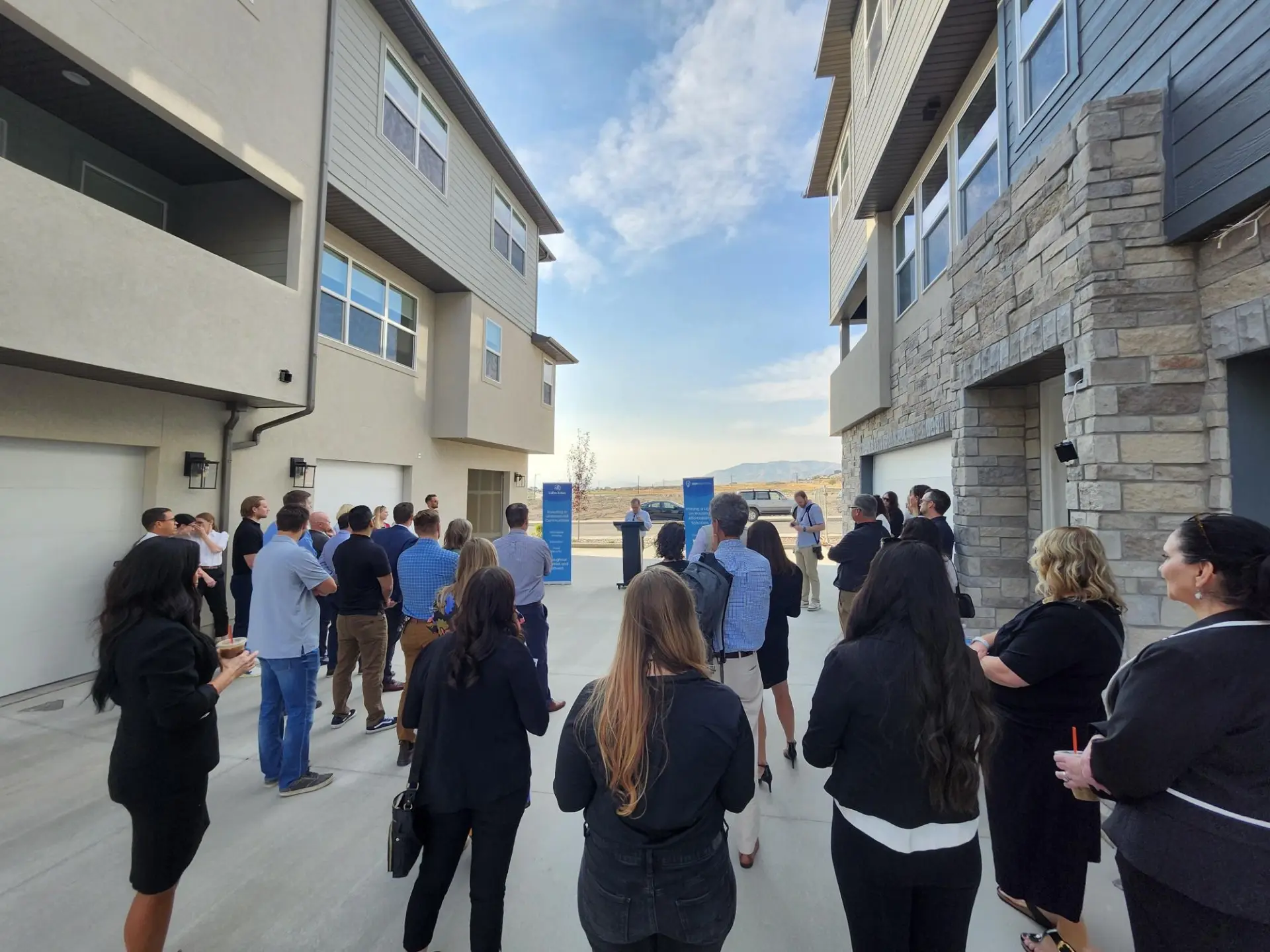 Salt Lake City, Utah, September 11, 2024 – Ivory Innovations and Call to Action Foundation (the Call to Innovations partnership) gathered today to celebrate their first leasing project, Innovation Park at Holbrook Farms (2601 N Ferguson Drive, Lehi). Clark Ivory and Drew Maggelet spoke about their continuing efforts to bring affordable housing to Utah before members of the community and housing officials before leading tours of some of the available units.
