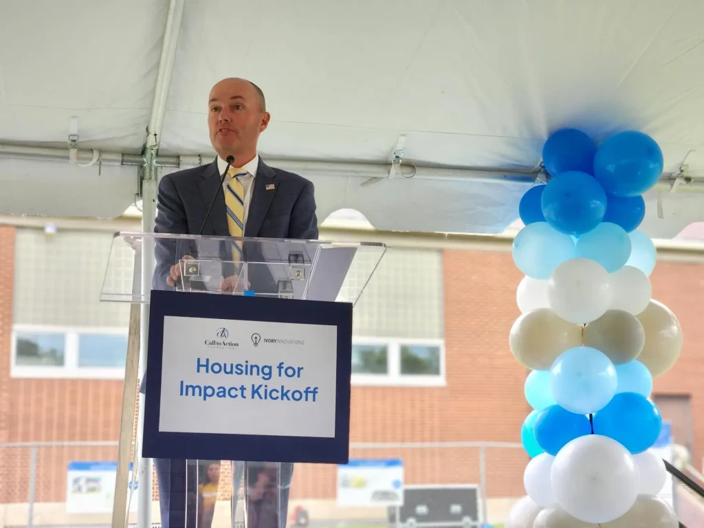 SALT LAKE CITY ( September 19, 2023) – Ivory Innovations and Call to Action Foundation have joined forces to create the “Housing for Impact” partnership, a new and unique partnership focused on addressing the need for affordable housing in Utah. The partnership hopes to positively impact those they house as well as pave the way for future affordable housing developments in Utah. To kick-off this new partnership, local leaders including Gov. Spencer Cox gathered today to announce seven upcoming affordable housing projects and a goal to build 850 affordable housing units over the next three years. In addition to Salt Lake City, the following communities have been identified as locations for upcoming developments: Lehi, South Jordan, Francis, Park City, Draper, and Magna.